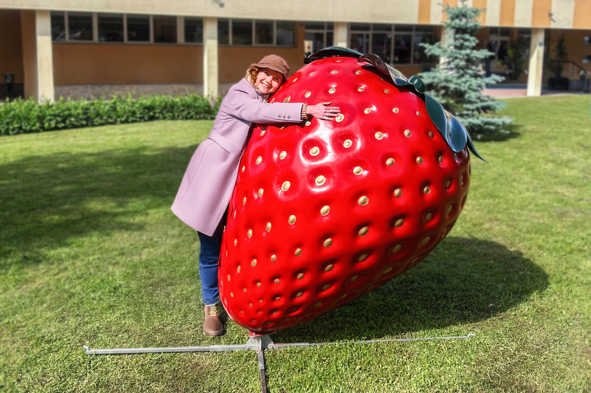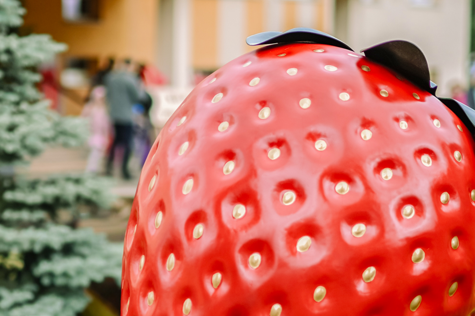 Pēc īpaša pasūtījuma radītā kompozītmateriāla (stiklplasta) zemene kļuvusi par spilgtu akcentu Mālpils Zemeņu svētkos, pievēršot uzmanību ar savu iespaidīgo izmēru un dzīvīgajām formām. Tā izskatās tikpat sulīga un īsta kā dabā nogatavojusies oga – lielisks piemērs tam, kā dizains un amatniecība spēj radīt svētku brīnumu!